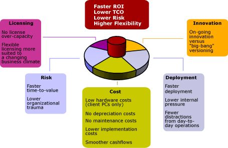 The hosted model lowers risk, simplifies licensing, eases deployment, encourages innovation, and decreases costs, all of which result in faster return on investment, lower total cost of ownership, reduced risk, and the flexibility that you need to successfully compete in today's fast-moving business climate.
